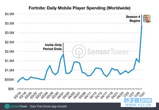 在第四赛季上线后,《堡垒之夜》iOS版本收入已经超过5000万美元