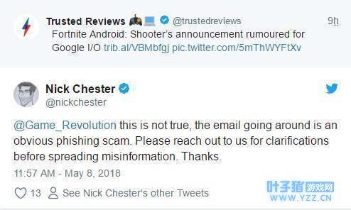 《堡垒之夜》手游遭山寨?已有多人收到安卓版内测邀请诈骗邮件!
