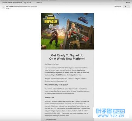 然而目前只有iOS版本(国区未上线),而且在安卓平台还没有上线,这就让一些不法分子看到了机会。最近,有很多人声称收到了《堡垒之夜》安卓版的“内测邀请”邮件,看起来还蛮逼真的样子。