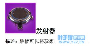 发射器/跳台 发射器也被称为跳板,玩法真的很多,而且能区分新手与老手,老手使用跳板可以打出各种各样的花式操作,可以狙死敌人之后直接跳板飞过去捡东西,也可以直接在很高的斜坡上方发射器,直接弹起来开伞飞走,这能让玩家逆天改命,遇到一些致命的天谴圈时,可以通过这个道具来把自己送进去,如果有多个跳板,还可以来回蹦,非常有意思,是一个趣味和实用性都很高的道具。 需要注意的是跳台跳起的高度是固定的,想要飞得远,就是自己搭板到更高处,或者在山上使用。