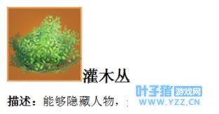 灌木丛 灌木丛也是一个比较有意思(蠢萌)的装备,能够隐藏人物,化作一个灌木丛,但受到一次攻击后就会消失,所以大家一定要在一些比较自然的地方使用,千万别在路中间就蹲下了,看起来就会非常奇怪,是个人都会开枪的。