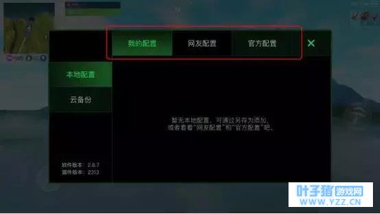 点击左上角“悬浮窗小图标”在“导入配置”中可以选择官方配置或网友上传的配置。