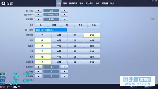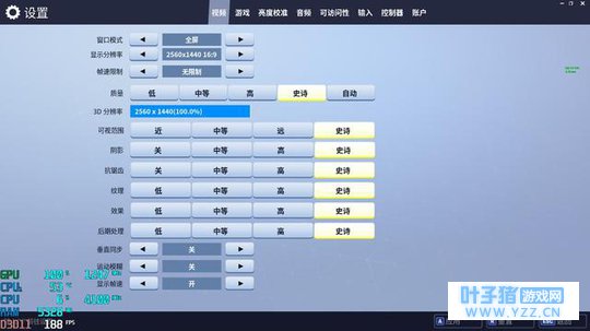 首先是2K(2560X1440)分辨率,全部画面设置都为史诗,说是最高画质毫不为过。