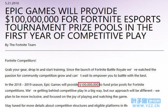 疯狂撒币1亿美元!《堡垒之夜》奖金池超十大游戏之和