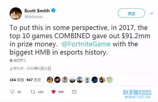 1亿美元总奖金,电竞史上之最!毫无疑问,1亿美元的巨额奖金池将是Epic Games对这款游戏的巨大投资。根据数据显示,2017年电竞项目奖金最高的《DOTA2》,其赛季总奖金也仅为3800万美元。“从某种角度来说,在2017年,排名前十游戏的电竞总奖金额为9120万美元。而《堡垒之夜》单款游戏的总奖金额却高达1亿美金,这已是打破了电竞历史记录!”电竞行业专家斯科特•史密斯(Scott Smith)在其推特上发文说道。