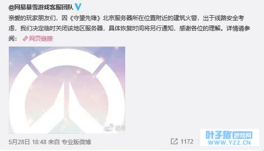 今天早上,守望先锋官博发文称游戏将会暂时停服。原因是因为服务器所在地区附近火警。所以暂时停服...
