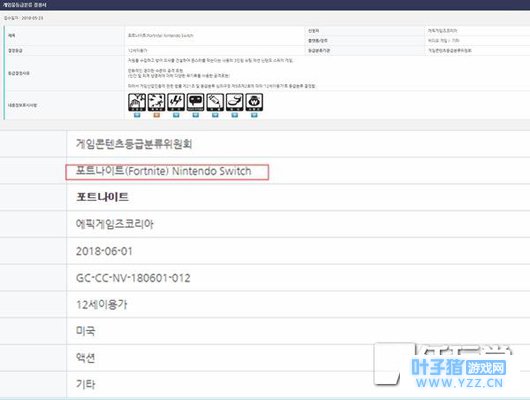 【资讯】《堡垒之夜》Switch版韩国完成评级,或将惊喜现身E3 自《堡垒之夜》爆红之后,业界一直有传它将登陆各大平台的消息,但始终真假难辨,最近又有可靠消息指出《堡垒之夜》将登陆任天堂Switch。在韩国分级网站上显示,韩国分级委员会近日通过了对《堡垒之夜》任天堂Switch版的审核,我们可以清晰地见到上头标示出来的“Fortnite”和“Nintendo Switch”等关键字样。