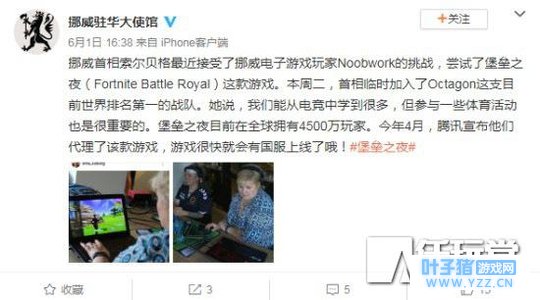 无独有偶,任天堂前两天刚刚更新了Eshop,也更新了一大波的CDN,有牛逼的玩家就从任天堂CDN上获取了更新数据,其中就包括了《堡垒之夜》升级文件,这下证据确凿了呢。 【趣闻】挪威女首相成堡垒“新代言人”,上手试玩还有官方微博宣传 火的游戏少不了有人玩,更少不了有名人玩,除了我们经常见到的网红主播、游戏大神、演艺圈艺人之外,政界人士玩当红游戏还帮忙宣传的你见过吗?这游戏就是《堡垒之夜》,而这热心推广的则是挪威女首相索尔贝格女士。看看人家这操作,在看看人家这专注的眼神,完全是一副沉迷其中的样子,这么玩真的大丈夫?