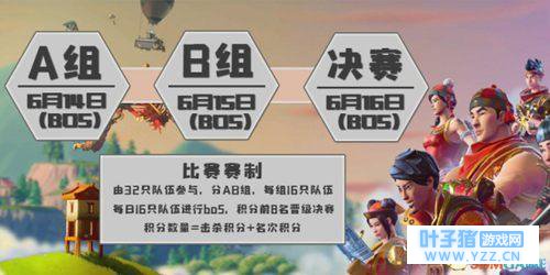 本次比赛将采用BO5积分制,分为A、B两个组,小组排名和击杀均可获得积分,每组积分排名前八的队伍晋级,将在6月16日晚上18:00决出最后的冠亚季军。