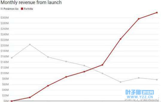 堡垒之夜增势稳定 很少有游戏能在八个月的时间内保持持续增长,堡垒之夜就是一款,相比于堡垒之夜,另一款现象级游戏精灵宝可梦就没有这么好的成绩了,宝可梦自从去年昙花一现之后成绩就一直下滑,直到近期才有小幅度回升,而营收已经被堡垒之夜拉开了一倍。