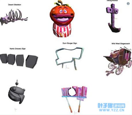 目前入口/时间扭曲已经摧毁了番茄镇的番茄人头,汽车旅馆的标志,孤独的小屋标志,以及今天早些时候位于零售商城的Noms标志。 Twitter上的一个爆料者@FNLeak则爆料,下一个出现入口/时间扭曲的地方将会是多汁果园,同时发布了一张入口/时间扭曲带走的物品全图,从图中我们可以看到已经消失的番茄头和汽车旅馆的标志。而第二行左起第一个,四格黑格子,其实就是Noms商店的广告牌(大家可以对比上下图,看看形状)。 如果真按着这位爆料者所说的,入口/时间扭曲将会出现8次,分别带走8样标识,算上零售商场的已经带走了4样了,看来后续还会有几个地区的标识沦陷。