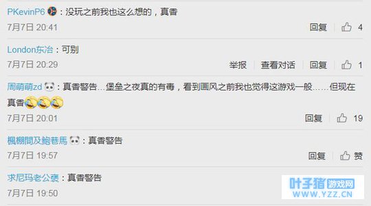 堡垒之夜国服7月下旬上线势必会打破绝地求生在国内的垄断地位。玩家们将涌入即将上线的堡垒之夜国服,虽然堡垒之夜的卡通画风引起大量玩家吐槽,但不少玩家在尝试过以后都受到了真香警告,有网友表示“堡垒之夜真的有毒,看到画风之前我也觉得这游戏一般……但现在真香”!还有网友说“没玩之前我也是这么觉得,不说了,真香”。