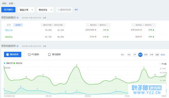 不过目前,虽然《堡垒之夜》宣布进军中国市场,但他在国内的热度似乎还不及老对手《绝地求生》。搜索引擎调查数据显示,过去一个月中,《堡垒之夜》的整体日均值在1.9万左右,而《绝地求生》的日均值则为6万,双方在国内市场的知名度和搜索量可谓差异巨大。 虽然本月中下旬,《堡垒之夜》就将正式登陆中国市场,但通过目前的搜索趋势而言,这一款在国外掀起风暴的游戏在国内将如何发展尚不得而知。 本文来源:今日头条,作者:玩加赛事绝地求生,转载请注明来源。 |