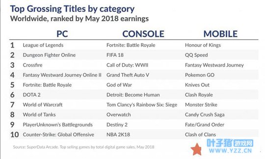 除了高涨的人气外,《堡垒之夜》的商业价值也是水涨船高。Superdata的统计数据显示,《堡垒之夜》在主机和PC端上始终保持了高昂的销售势头,PC端销售增长率排在第五,主机端销售增长率则傲视群雄,可以说,《堡垒之夜》为Epic Games带来了相当可观的业绩。