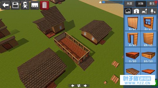 建造模式——像《堡垒之夜》搞战场 《像素大战》手游拥有操作性与创造性很强的物理模拟系统,玩家选择好道具后通过“建造模式”的编辑器就可以完成自己的创意,分享给玩家或是被应用到服务器中。 目前游提供的道具种类较多,包含建筑、塔楼、花草、树木、装饰品、家具在内的数百种,建造模式中点击编辑器右侧的拉倒中央场地即可完成操作,而强大的编辑器系统还支持建筑方向更改、天气与地形的变化,所以不管是沙漠野战还是海岛战,都能够满足玩家们的脑洞与创意。 当然在足够的耐心下,你也可以去还原游戏的一些经典地图,比如CS死斗的地图、《绝地求生》中的烂尾楼,甚至是搬运乐高电影的场景。