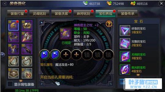 同样随着大家角色等级的提升,会在左下角的隐藏图标中,解锁装备强化系统,大家即可在装备强化中进行宝石养成操作。 打开装备强化中的宝石养成界面,大家就可对装备进行打孔及镶嵌的操作。使用打孔钻可开启装备孔位,越高等级装备可开孔位越多,至多可开启7个孔位。宝石养成材料可通过购买或参与游戏内玩法获得。开启孔位的装备可进行镶嵌操作,成功镶嵌宝石后,装备将会获得高额的属性加成。 当然,随着大家等级的提升与物品的丰富,初始镶嵌在装备中的宝石属性可能已经无法满足现状,这时大家可以点击孔位内的宝石即会弹出是否拆卸宝石的提示框,只需消耗一定数量的银子即可进行拆卸。 如果大家背包中的低等级宝石较多的话,可以点击界面右下方的合成按键即可进行宝石合成操作,每5颗低级宝石都可合成一颗高级宝石,合成宝石会消耗一定活力值。 最后大家如果想查看宝石带来的属性,点击人物头像打开人物界面,选中已镶嵌宝石的装备,点击宝石右侧的【详细】即可查看镶嵌后的宝石所带来的属性加成。 [编辑:叶子猪小秘书]