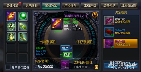 装备洗紫之沉香、云杉 装备洗紫新道具“沉香木炭”“云杉木炭” 1、【沉香木炭】【云杉木炭】为游戏中全新的洗紫道具 2、【沉香木炭】【云杉木炭】可以对所有可以进行洗紫的装备使用 3、使用【沉香木炭】进行装备洗紫后重新生成至少2条的紫属性 4、使用【云杉木炭】进行装备洗紫后重新生成至少3条的紫属性 注:届时自动洗紫功能也将同时上线