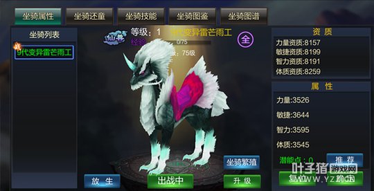 马蹄踏得夕阳碎,卧唱敖包待月明。 《成吉思汗手机版》将迎来全新资料片,解锁更多新玩法:坐骑繁殖,纪元录进阶,精英问心塔等更多玩法等你来探索! 坐骑变异 珍兽新生 在成吉思汗的草原上,各种珍兽、异兽、神兽背后都隐藏着一股神秘的力量----变异,这种力量既可以提升坐骑本身的能力,又能改变坐骑的外观。随着第一只变异的珍兽出现距今已经过了很久的时间,随着时间的推移世上已经有人可以掌握这样的方法,就是通过繁殖的发方法,赋予珍兽新的生命。 玩法规则: 1、 游戏内现有所有坐骑的极品种类增加新的繁殖功能,繁殖成功后得到的变异坐骑,但是坐骑繁殖有几率失败; 2、 同一只坐骑一共可以繁殖9代,代数越高属性越好; 3、 坐骑繁殖条件: (1) 主坐骑必须是极品坐骑(或非9代的变异坐骑); (2) 每次繁殖除了消耗银子,还需消耗4个与主坐骑同类的降世符; 4、 每次繁殖不论成功失败,都不会改变主坐骑的坐骑技能与技能等级;