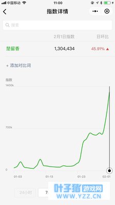 在封闭的微信平台,“楚留香”的指数从1月21的84611上升至2月1日的130w,而31号当日微信指数涨幅高达1057%。另外,在《楚留香》手游贴吧,玩家生产的帖子数也逼近54万。