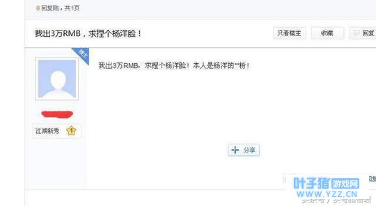 看到这些捏脸大神捏出来的作品,再看看自己的人物,难免会有些心灰意冷,于是有这么一个玩家在贴吧里出价三万人民币求捏出杨样的脸。