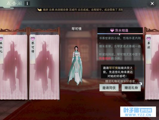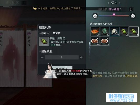 选择了妹子之后,就出现了这样的一个画面,让我送给姑娘礼物来表达对姑娘的好感!一看这小编就来劲了!第一次送给姑娘礼物得有排面!不能掉了身份!