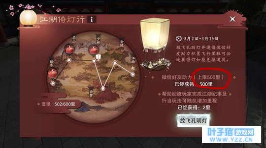 链接就是点击“放孔明灯”,注意红圈喔,微信好友助力只能到500里,也是就小编的孔明灯快接近少林的地方。总之,纯粹的微信好友的500里助力是不会到达少林的,还是得多帮助帮助回归玩家才能继续前进。至于怎么帮助回归玩家呢,万能的拉群互帮互助包治百病。
