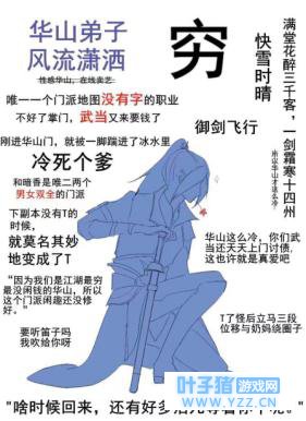 这个例子是华山派的。在《楚留香》里一个非常穷的门派。穷到别的门派都有门派玩法,但他们没有。于是我们就写这样一段话。现在华山的穷已经被玩家玩成了一个梗。