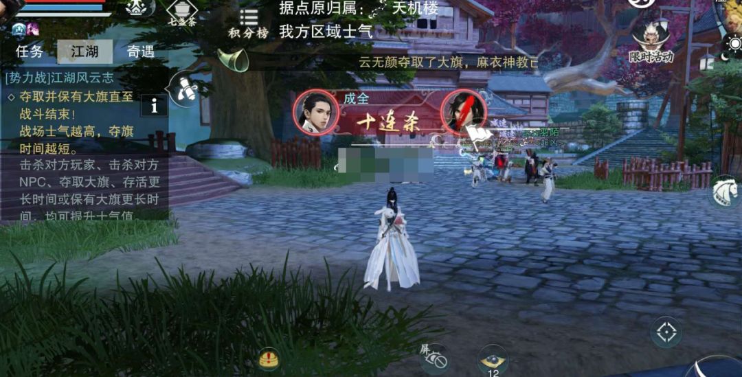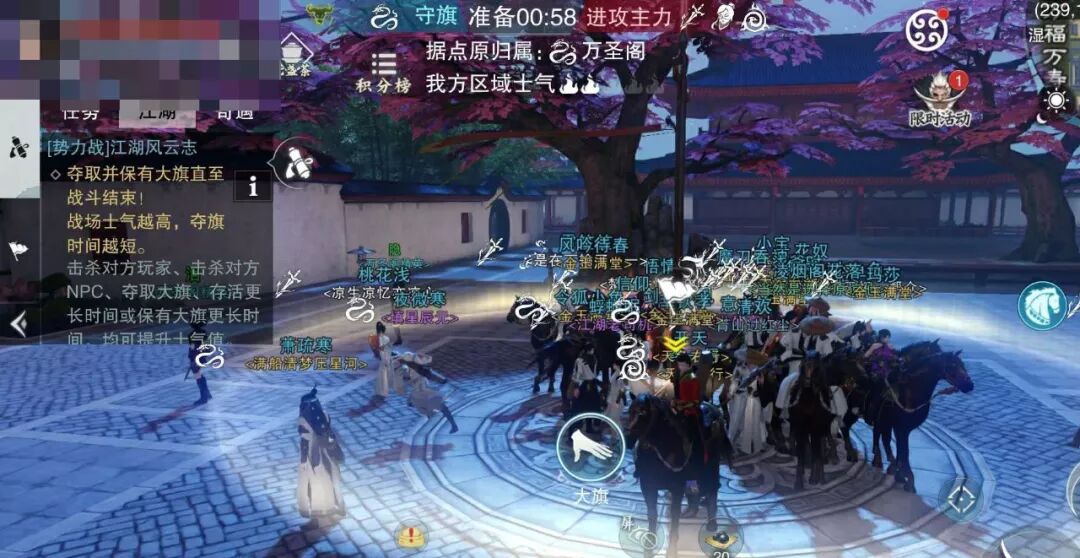 原来他们说的是在《楚留香》的 【江湖风云志】 玩法 这是一场超级盛大的势力争夺战 一张地图甚至可以容纳1400多人在各个据点同时作战! 气势盛大,浩浩汤汤,超级刺激! 我李小四现在也是搞大事的人了!