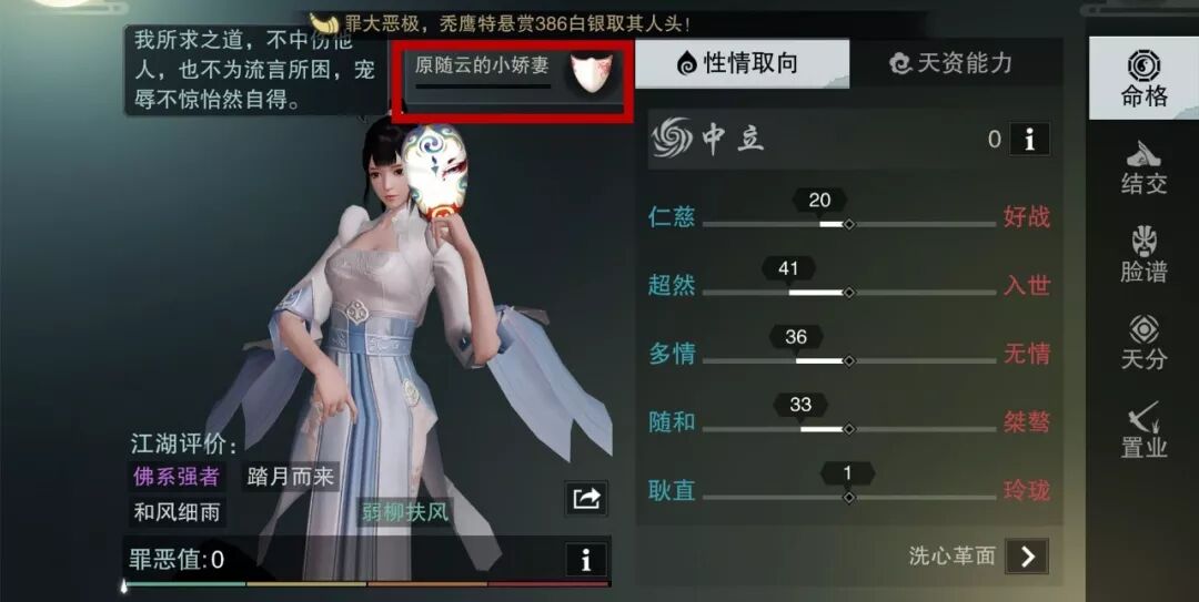 完 成不同任务,收获不同的命格点数,就可以获得对应成就和 脸谱,也会获得 永久江湖目标称号 。