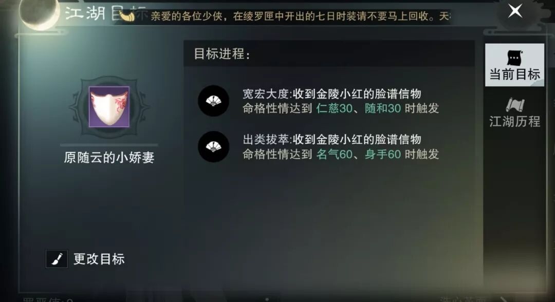 命格系统中,可自定义江湖目标,