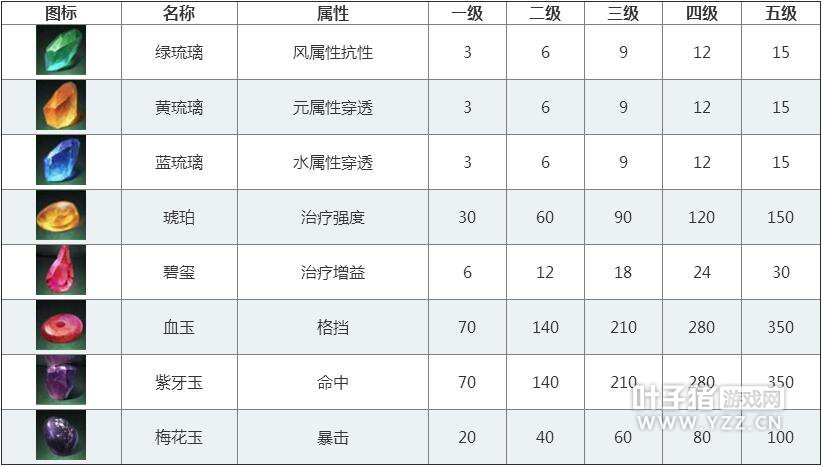 楚留香手游宝石大全 各等级宝石属性全解