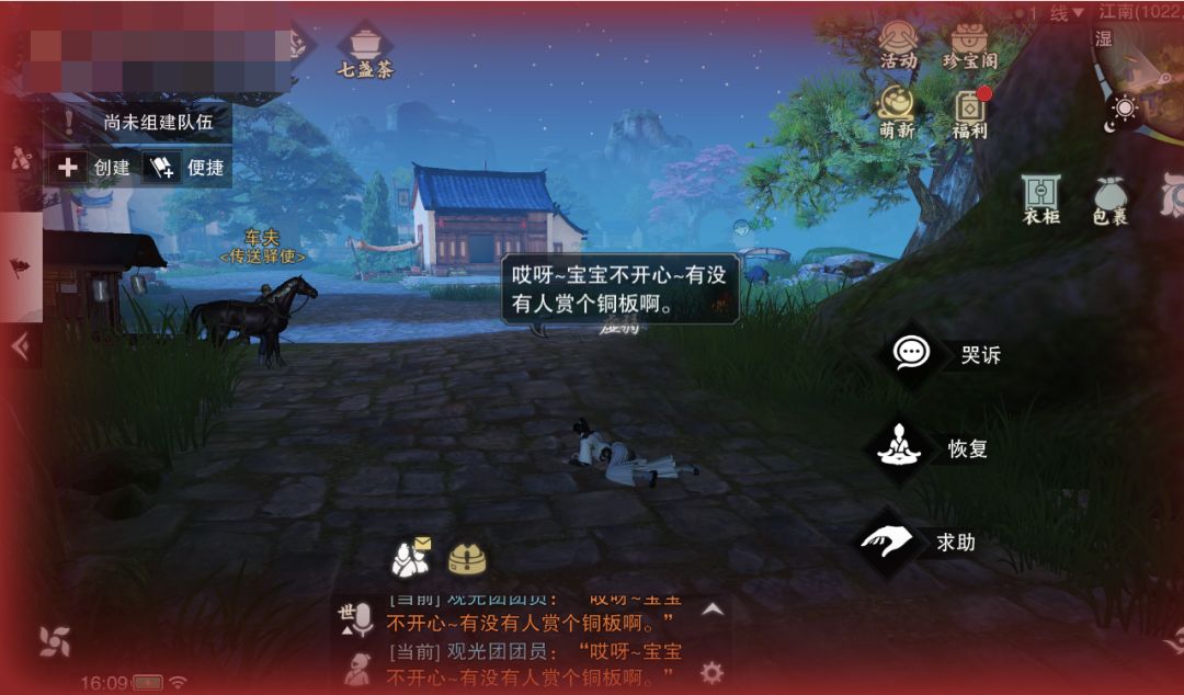 不行,我一定要想办法振作起来! 首先,我可以在世界发起求救! 我每天和江湖小虾米们一起练功玩耍 只要他们过来,给我 传功疗伤 我李小四马上又是一条活泼乱跳的好汉! 然而……