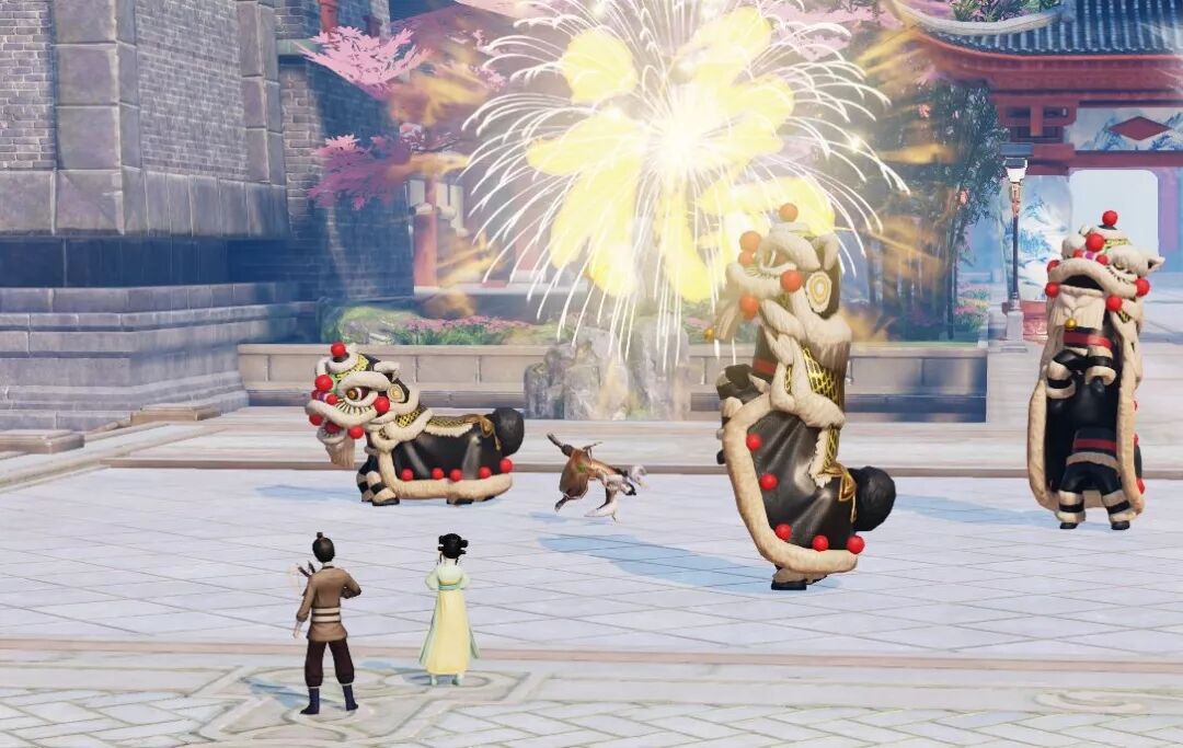 虽然过年也不能落下练功 但是过年时一片喜庆景象,金陵城张灯结彩 大街小巷还有舞狮队出没,我李小四可不能错过!