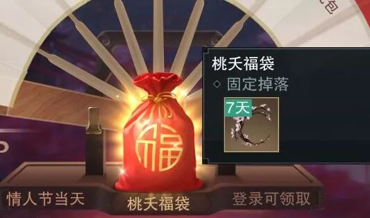 特殊的日子还有特殊的奖励领取 绝版挂件、称谓通通不在话下! 情人节(2.14)登录游戏 就可以领到 情人节专属挂件“桃夭(7日)”