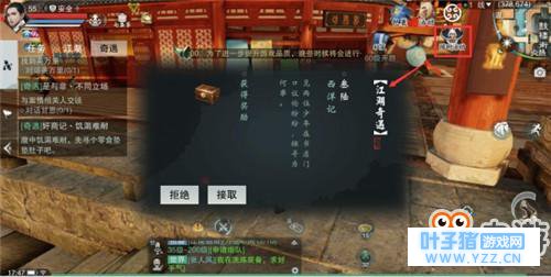 奇遇任务已经可以由少侠选择是否接取,并有5分钟的选择倒计时,显示在界面上图标是白胡子老头的限时活动。