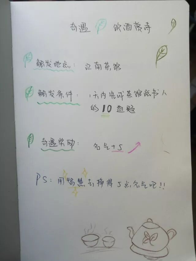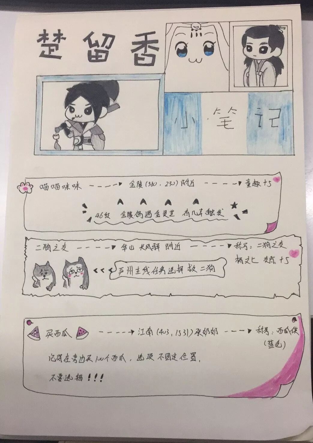以及这样小清新画风的手绘奇遇攻略 这位少侠怕不是要集齐江湖奇遇大全哦?