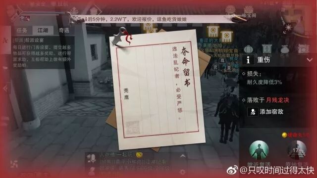 关于牢狱生活 少侠还有更多想法吗? 欢迎 投票或留言 把你的意愿告诉天机阁吧!