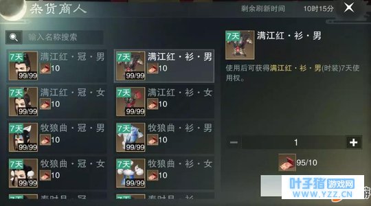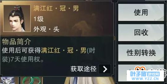 注意,并不是所有的时装都可以回收,秦时月就不能回收,不知道是系统故意的设定还是BUG,小编拿7天的满江红时装做测试,10个绫罗缎兑换了一个满江红帽子,居然可以回收60万铜币!