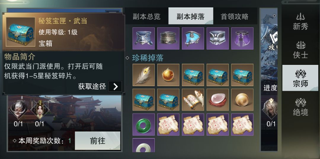 ➤ 副本产出:侠士宗师等难度的副本,有几率掉落 对应职业的秘籍宝盒 。
