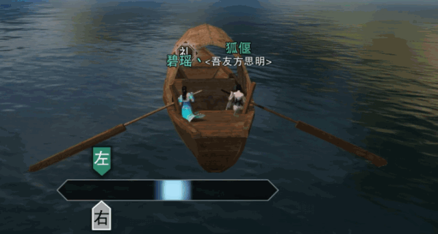 乌篷船 和 瓜皮船 就不一样了, 要想顺利的让这两种船前进是非常需要配合的,所以在划的时候最重要的就是两个字:默契。 两位少侠需要 在指针到达指定位置的时候同时按下划船按钮才能前进 。