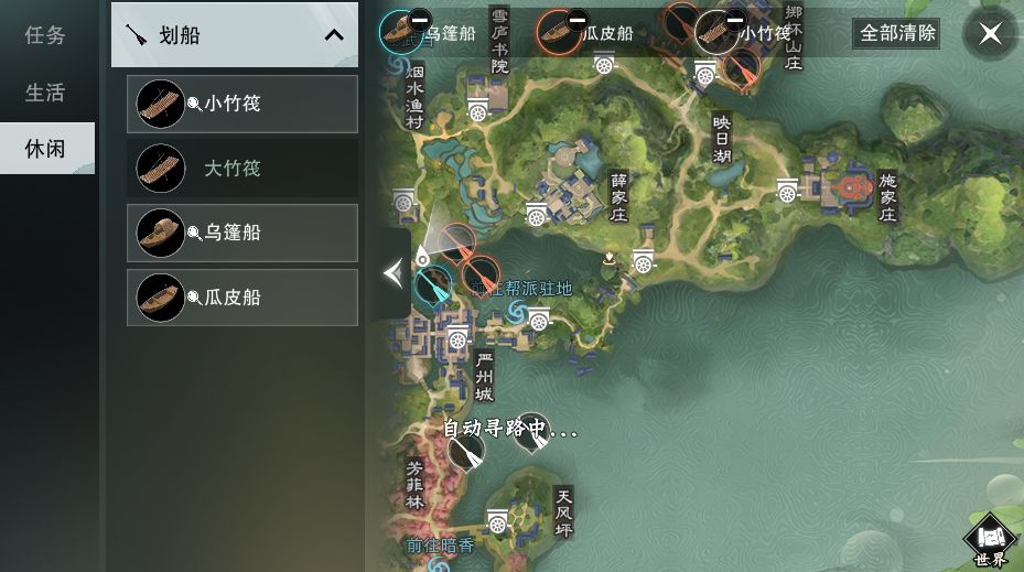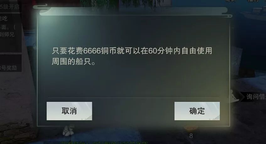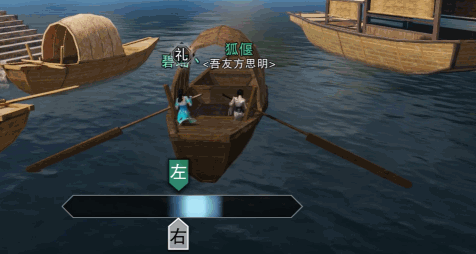 靠近目标小船后,少侠就可以选择撑船还是入座观光啦!