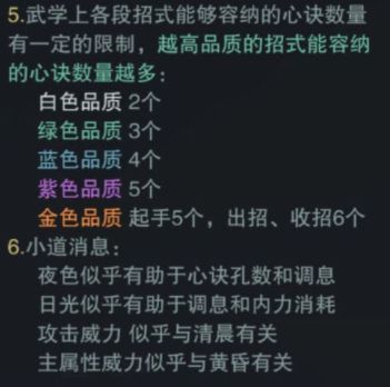 ➤ 4、 新武学会继承初始武学的部分心决 ,所以融会贯通前不建议打好的心决上去。初始武学的孔球越多,新武学继承到更多心决的几率越大。