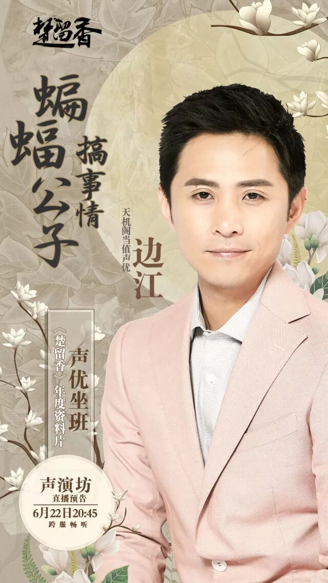 曾经在多个游戏、动画、影视剧等 作品中 担任重要配音 还给我们蝙蝠公子原总配音的边江大大 初次来到声演坊作客 大家想好怎么招待他了吗?