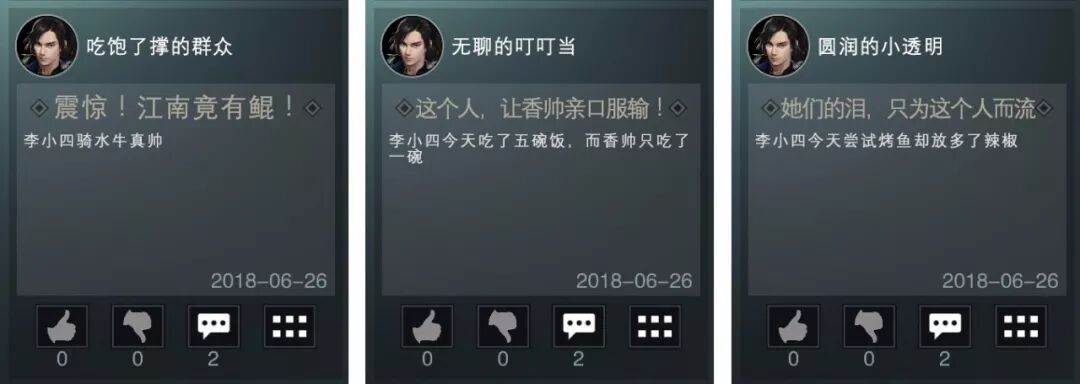 不得不说,自从我改变了策略之后,点击率果然提升了不少! 幸好,酒馆中发布传闻的昵称都是随机的,我并没有暴露我自己,但李小四这个名字的曝光率提升了不少!
