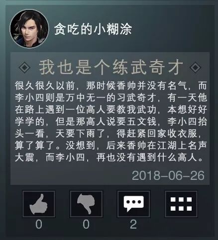 那么问题来了,如何能让江湖上开始流传我的故事,并大大成名呢?这个问题怎么可能难得倒我?毕竟我李小四除了是一名未来的江湖大侠…还是一个小编! (嘻嘻,怪不好意思的)