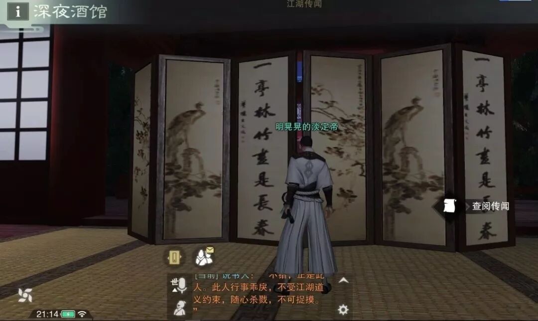 没错这就是【江湖传闻】玩法的必备工具,少侠们只要来到屏风前, 随手写下自己想传播的故事,就有机会在屏风前展示出来,让所有来到酒馆玩耍的少侠们看到! 而且……使用的是 系统随机分配的昵称 。
