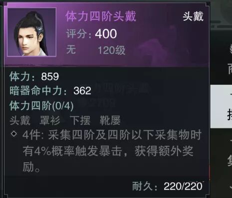 ✦ 套装属性 : 采集时 有概率额外获得奖励。
