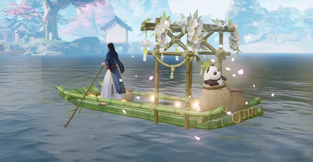 (1)江南马匹驯养厂引进了江南造船厂的生产线,对水上交通工具的研究蒸蒸日上,近日有幸请来熊猫滚滚作客试航新版竹筏,少侠可以在这个充满了欢乐的消夏节,与熊猫滚滚一起,撑起一条长杆,纵舟于江南水乡,不要错过哦!
