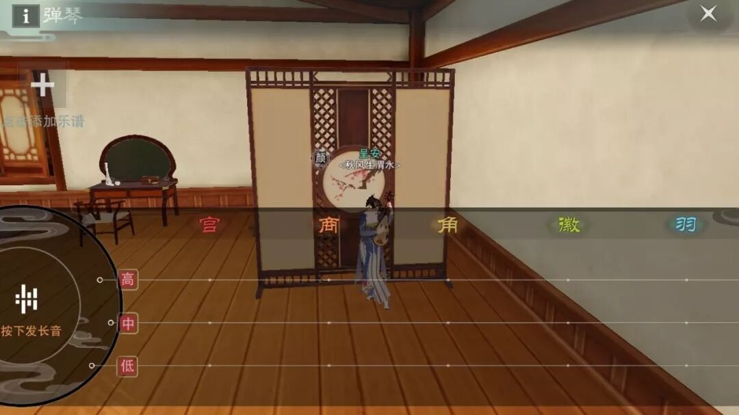首先我们来认识一下演奏界面,上面的 宫商角徴羽也就是do re mi so la,在民乐简谱记谱中写作12356 ,6就是第五个…没4