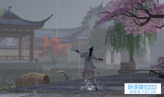 在曝光的游戏图片可以看到,《楚留香》的武侠世界里,天气会随机变化,倘若玩家在行走江湖时,碰到下雨天,可能会一个不小心脚底打滑而摔倒。据悉,在游戏测试期间,就有不少玩家在此摔了跟头。
